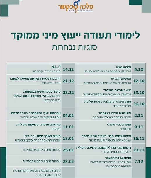 תעודת סיום המקנה זכות להצטרפות לארגון מנחי המיניות''אלמא''.